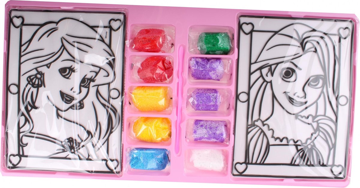 Slammer Disney Princess magic beads Maak je eigen schilderijen van Disney Princess met deze magic beads. Door de opstaande randen is het makkelijk om de magic beads met behulp van de spatel binnen de lijntjes aan te brengen. Op deze manier kunnen ook de allerkleinsten de mooiste creaties maken. Het schilderij is na twee uur droog. Specificaties: Geslacht: junior Kleur: meisjes Materiaal: kunststof, karton Afmetingen schilderij: 17 x 24 cm Leeftijd: vanaf 3 jaar Inhoud: 2 Schilderijen 1 Spatel 10 Zakjes met kleuren