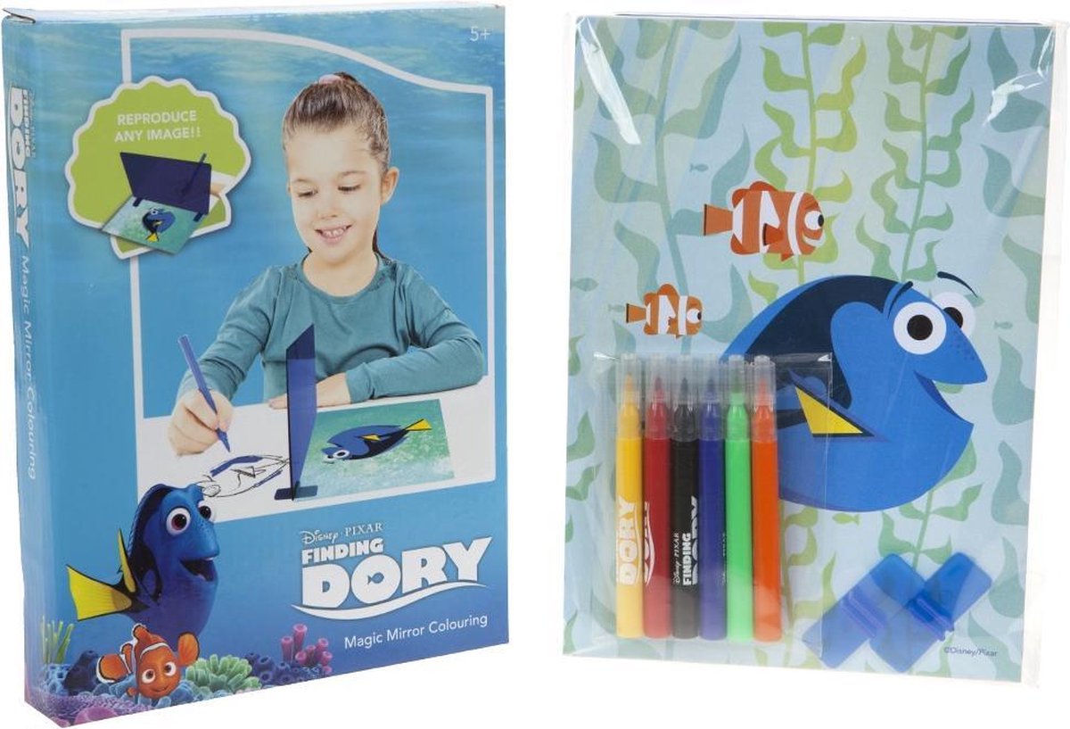 Slammer magic mirror kleurplaat Finding Dory Maak zelf de mooiste kunstwerkjes met deze Disney Finding Dory magische spiegel teken- en kleurset. Kies één van de afbeeldingen en teken hem na met behulp van de spiegel. Om je tekening helemaal mooi te maken, kleur je hem in met de meegeleverde stiften. Specificaties: Geslacht: junior Materiaal: kunststof, papier Kleur: multicolor Leeftijd: vanaf 5 jaar Inhoud: 1 Magische spiegel 1 Set stiften Verschillende kleurplaten