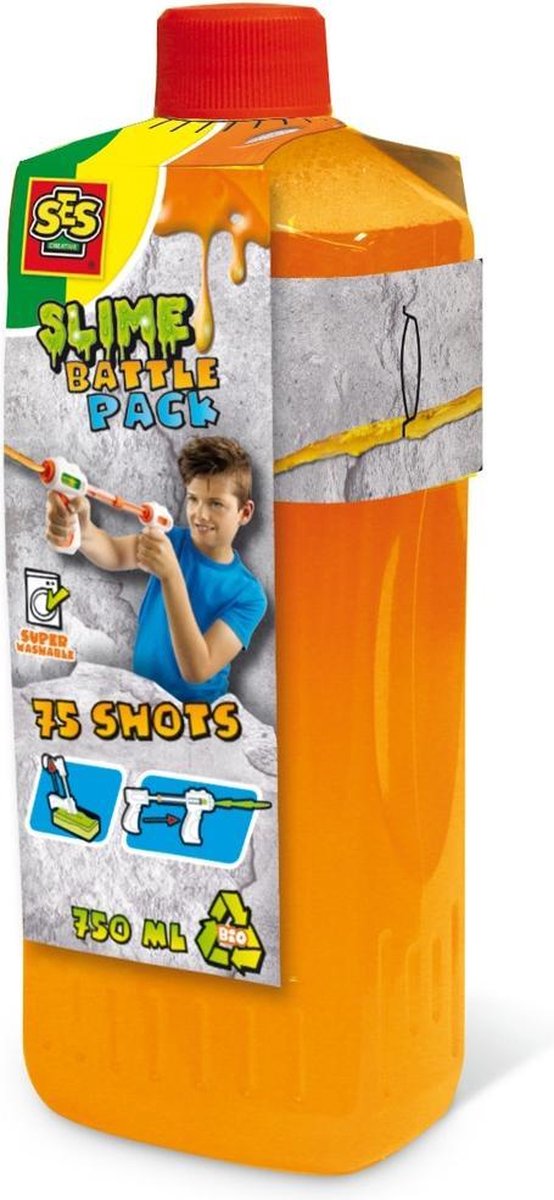 Een fles vol glibberig groen of oranje slijm. Los te gebruiken of als navulling van de Slime battle blaster (02271). Dit slijm is veilig en goed uitwasbaar.