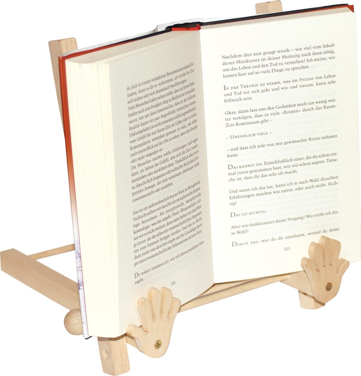 Small Foot boekensteun. In 2 standen kan de zorgvuldig vervaardigde houder van massief hout ingesteld worden & hij houdt bij een bepaalde positie het boek zelfs open. Dimensies: ca. 22 x 25 x 22 cm Materiaal: hout