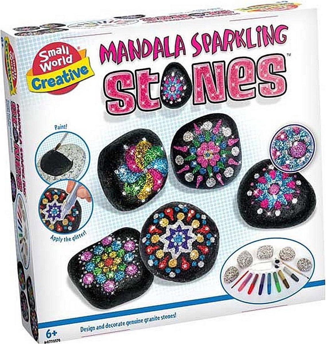 Maak mooie versierde stenen metSmall World Creative Mandala Sparkling Stones. Geschikt voor kinderen vanaf 6 jaar.