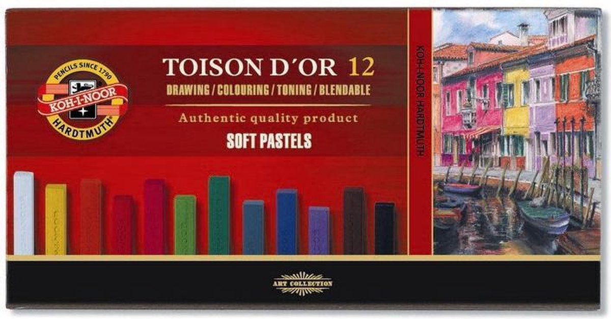 Koh-I-Noor soft pastel carré (vierkant) is van zeer goede kwaliteit. Dit komt door de kwaliteit van de gebruikte pigmenten in samenstelling met het bindmiddel. De vierkante vorm maakt het mogelijk om grote vlakken te vullen maar ook om scherpe lijnen te zetten. De pastels geven sterk af en zijn goed met elkaar te mengen. De soft pastels van Koh-I-Noor bevatten geen schadelijke stoffen. Lengt 7.5 cm, dikte 6mm
