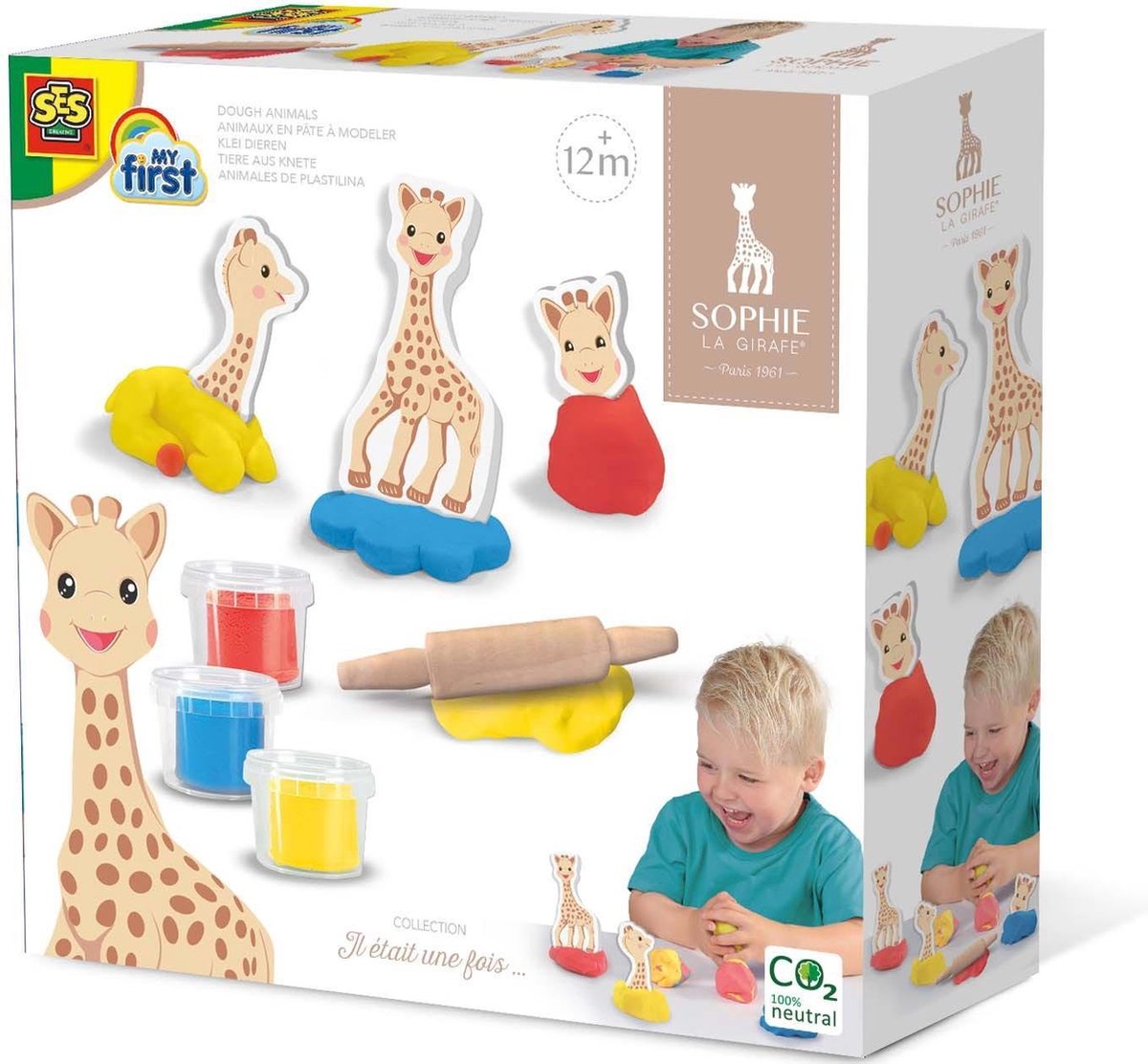 Maak je eigen Sophie la girafe van klei! Kies uit de verschillende foam onderdelen een hoofd en klei daarbij het lichaam van Sophie. De foam onderdelen kunnen bovendien ook gebruikt worden als uitsteekvormen. Welke ga jij maken? Alle klei van SES Creative is veilig te gebruiken. Het is glutenvrij en bovendien extreem zout, zodat kinderen het niet opeten. De klei heeft heldere kleuren, is extra zacht en lang bruikbaar door de hersluitbare verpakking. Zo heb je urenlang kleiplezier. Eigenschappen: Super zacht Droogt niet uit tijdens het spelen Makkelijk uitwasbaar Mooie heldere klei Glutenvrij Veilig te gebruiken; de klei is extreem zout, zodat kinderen het niet zullen eten Altijd een leuk resultaat het de Sophie la girafe figuren Foam ook te gebruiken als uitsteekvormen Echt houten deegroller