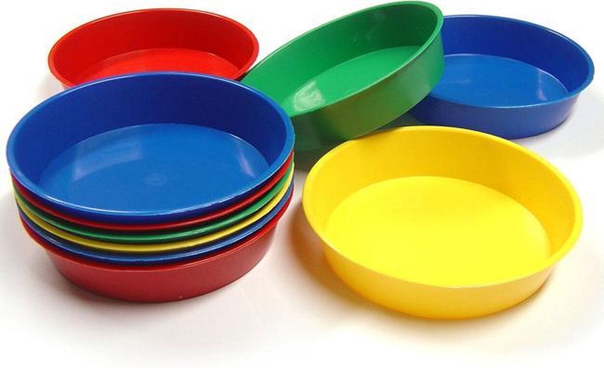 Sorteer -of Stempel Dipschaal 13 cm - 10 stuks. Deze kleurrijke schaaltjes of schoteltjes kunnen gebruikt worden om diverse kleine knutselmaterialen in te sorteren of om (verf) sponsjes in te dompelen. Ze hebben een diameter van 13 cm en zijn 2,5 cm hoog. De verschillende kleuren worden willekeurig door elkaar geleverd. U bekomt dus 10 stuks van deze gekleurde schaaltjes.
