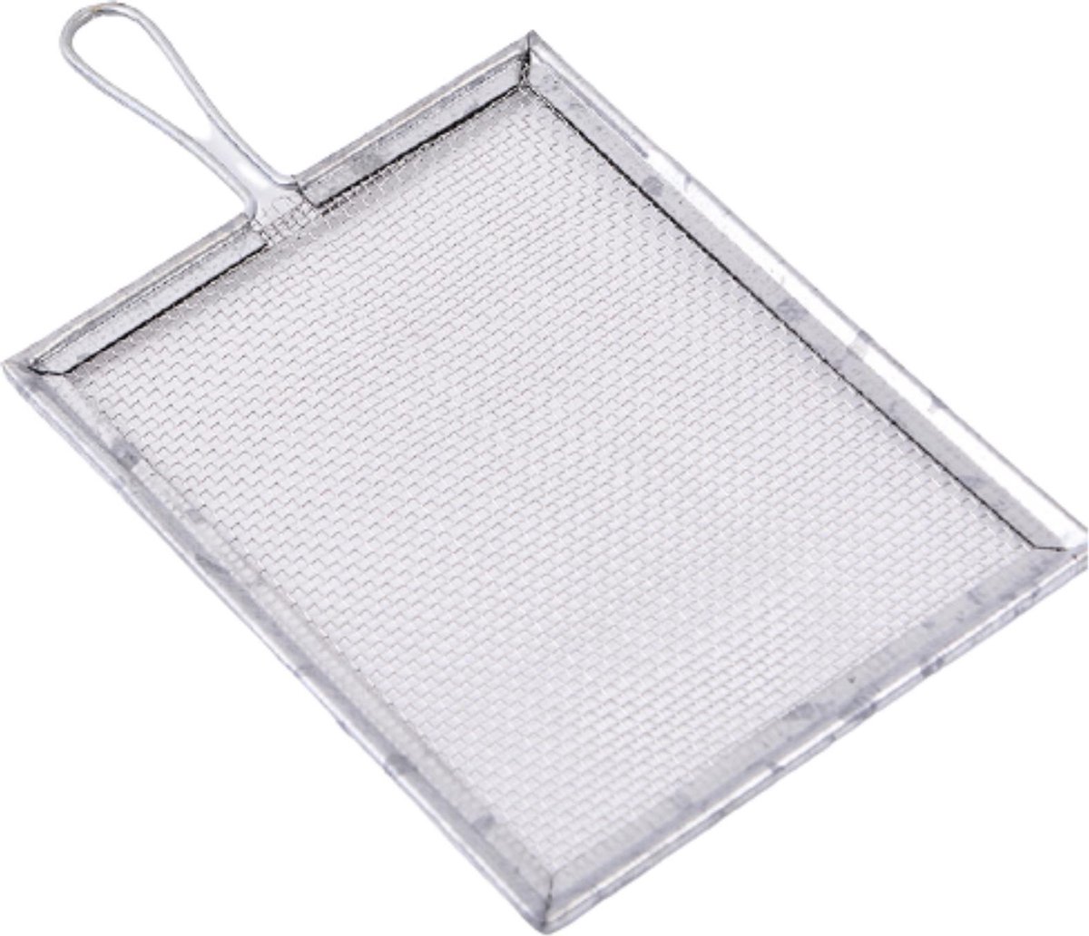 Wil je weer eens iets nieuws toevoegen aan het creatief materiaal in huis of voor je kinderopvanglocatie? Dan is dit misschien iets voor jou! Een spatraam is geschikt voor ecoline of verdunde waterverf. Als kwast kun je het beste een tandenborstel gebruiken die je over het spatraam heen haalt. Je kunt een sjabloon gebruiken om in te 'spatten' of juist iets op een wit papier vastleggen en daar omheen 'spatten', bijv. een mooi blaadje van een boom. Of je kunt er je eigen gestippelde kadopapier mee maken. Leuk voor moederdag of een andere feestdag! 9.5 cm. x 17 cm. metaal alle leeftijden