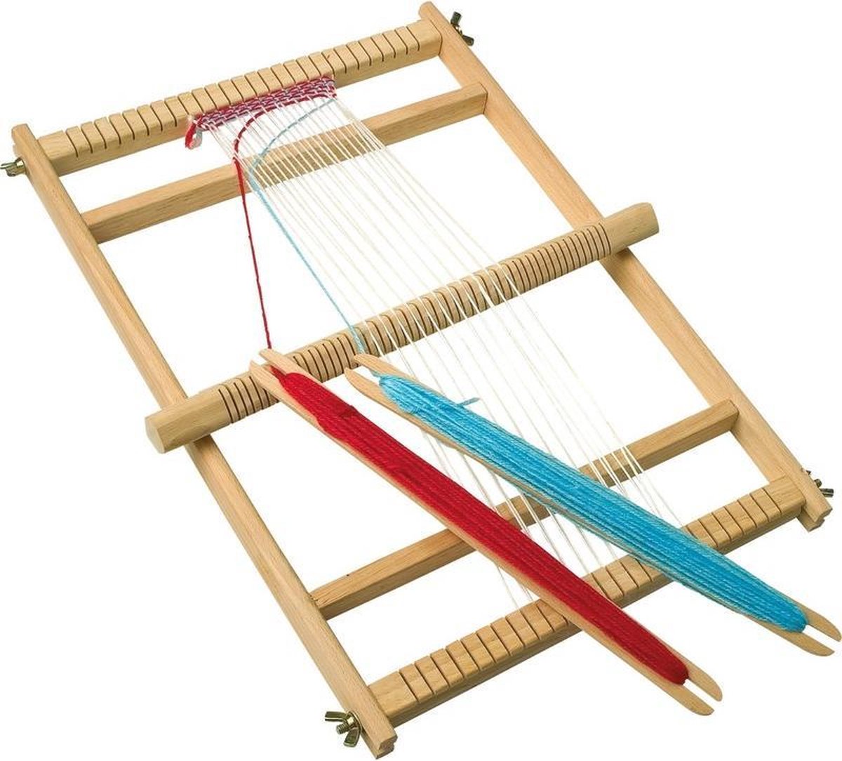 Houten weefgetouw deluxe. Handwerk weefgetouw met een formaat van ongeveer 32 x 2 x 46 cm.