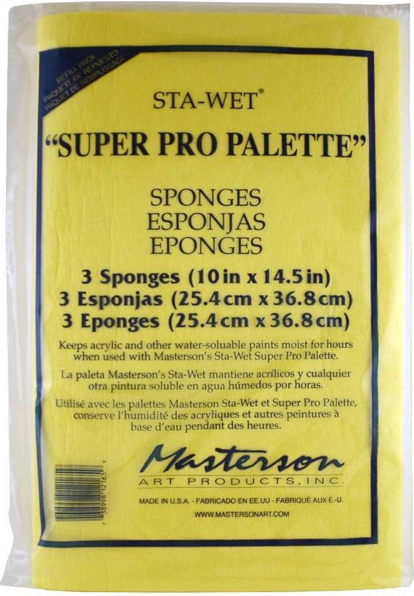 Masterson Art Sta-Wet Super PRO 3 Pack Sponge Refill - 3x. Deze set bevat 3x navullingen voor de spons die gebruikt kan worden in de Sta-Wet Super PRO Palette wet-palet.