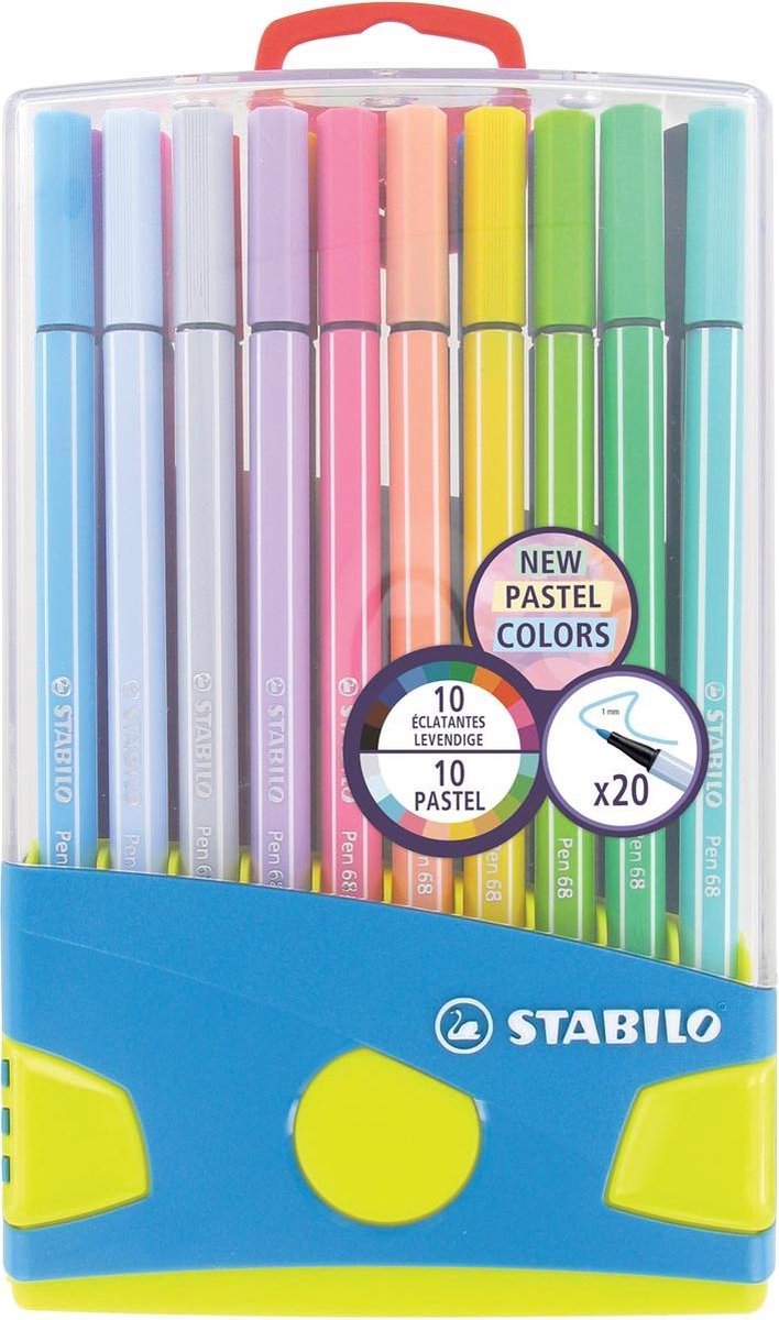 Hoogwaardige kleurstift met reukloze inkt op waterbasis. Schitterende glans en kleurintensiteit. Regenereerbaar: indien de stift na 48 uur openblijven uitgedroogd is, plaatst u het dopje er weer op en de stift is weer bruikbaar. doosje met 20 stuks in geassorteerde pastelkleuren