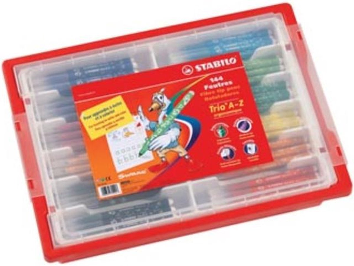 Kleurstift met driekantige gripzone. Ligt makkelijk in de hand. Op waterbasis. Makkelijk verwijderbaar van handen. Uitwasbaar. In een kartonnen etui.