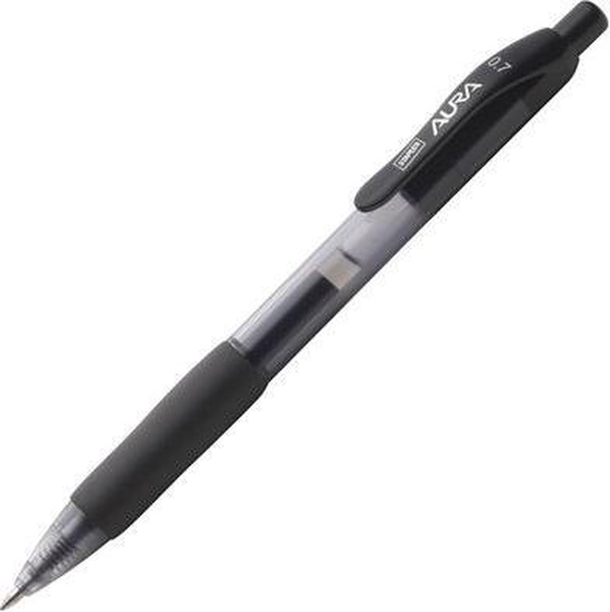 Staples Aura gelpen met kliksysteem, medium punt van 0,7 mm, zwarte inkt, doorzichtige huls met grip (pak 12 stuks)