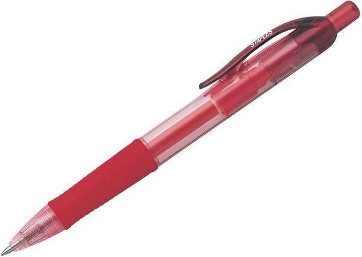 Dankzij de puntgrootte van 0.7 mm creëren Staples®-gelpennen met kliksysteem duidelijke lijnen voor heldere verslagen. De Staples®-gelpennen met kliksysteem bieden op kantoor. thuis en zelfs in de klas een soepele. nauwkeurige schrijfervaring. Dankzij het mechanisme dat met één klik intrekbaar is. worden de punten van deze pennen optimaal beschermd als ze niet in gebruik zijn. Gebruik de gelpennen bijvoorbeeld voor het invoeren van lijsten. het maken van notities of het schrijven van creatieve kopij. Met één klik intrekbaar mechanisme Voor professioneel en persoonlijk gebruik Lijndikte: 0.7 mm Inhoud: 12 Kleur: Rood Softgrip De comfortabele softgrip biedt meer controle tijdens het schrijven. Hoge kwaliteit Staples-huismerkproducten bieden meerwaarde; onafhankelijke tests garanderen kwaliteit die gelijk is aan of hoger dan bij concurrerende producten. Uitstekende prijs-kwaliteitverhouding Het zijn goede prestaties en concurrerende prijzen die het tot de beste keuze maken.