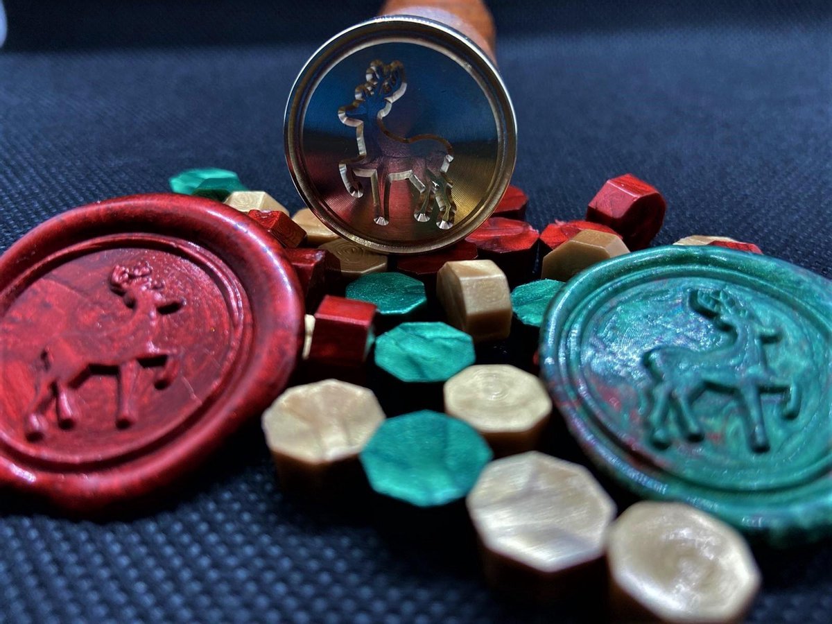 Met deze stempel maak je een mooie waxzegel/lakzegel met de opdruk van een hert. Door het handvat (hout) kan je deze makkelijk plaatsen in de wax. Daarnaast is deze zeer gemakkelijk schoon te maken. Erg leuk voor op een cadeau te gebruiken voor bijzondere gelegenheden of de aankomende feestdagen! Tip voor Kerst en Sinterklaas! Incl. 30 waxzegels groen/rood/goud