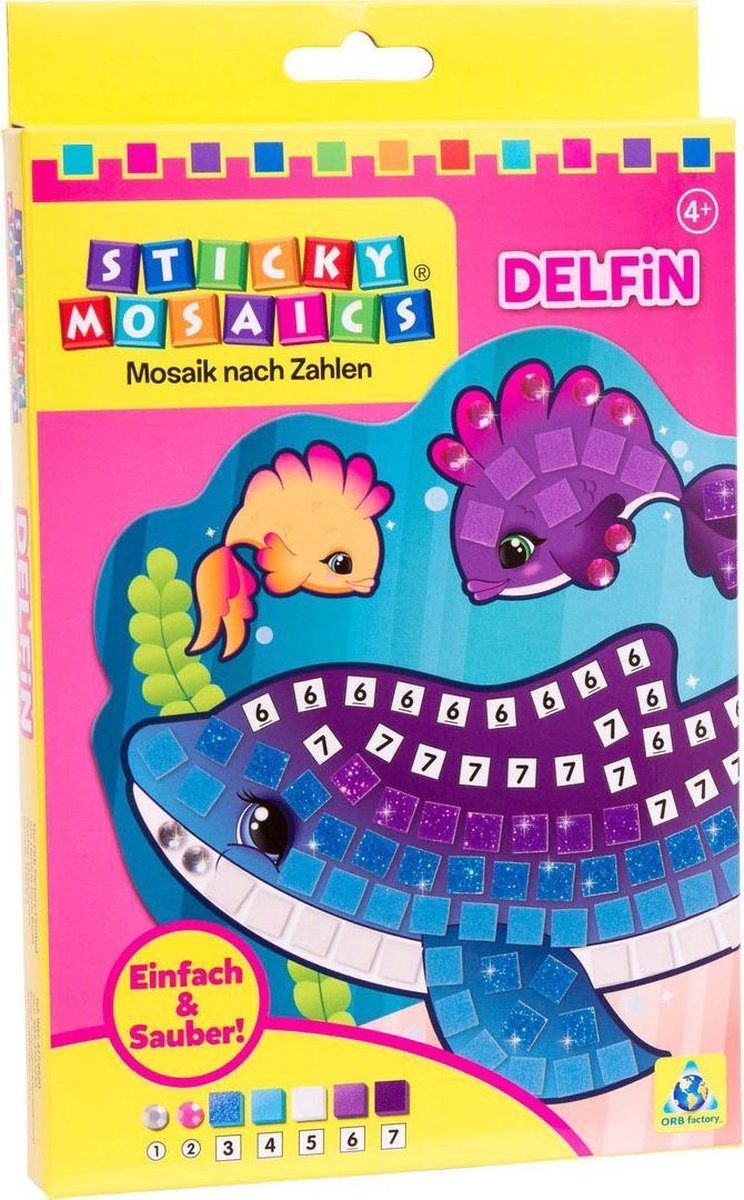 Sticky Mosaics mozaïeken dolfijn Wil jij jouw creativiteit kwijt, nou dat kan bij deze leuke mozaïeken dolfijn. Met sprankelende juwelen en zelfklevende schuimrubberen schijven kun jij het dier gaan versieren. Specificaties: Kleur: multicolor Geslacht: unisex Materiaal: schuimrubber Afmetingen verpakking: 14,6 x 23,5 x 1,9 cm Leeftijd: vanaf 4 jaar Inhoud: 1 Mozaïek dessin + muurhanger Zelfklevende schuimrubberen
