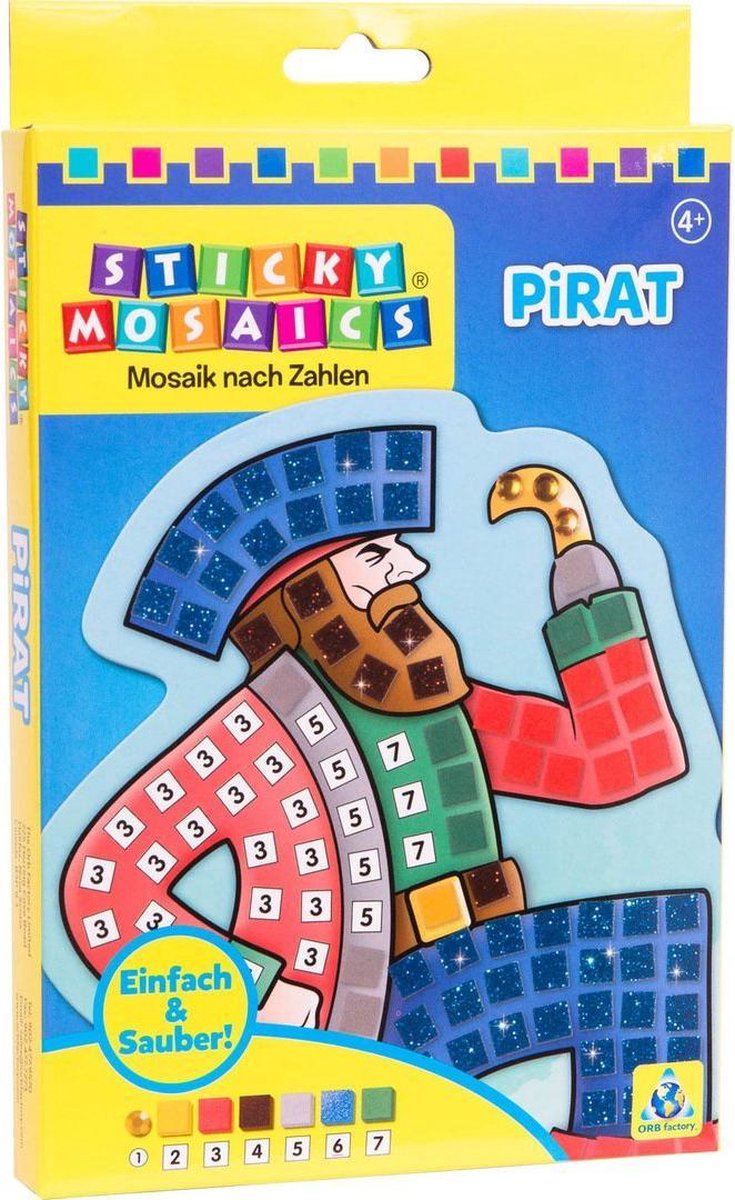 Sticky Mosaics mozaïeken piraat Wil jij jouw creativiteit kwijt, nou dat kan bij deze leuke en stoere mozaïeken piraat. Met de sprankelende juwelen en zelfklevende schuimrubberen schijven kun jij helemaal los gaan. Er zit zelfs een muurhanger bij waardoor jij jouw mozaïeken piraat kan ophangen. Specificaties: Kleur: blauw Geslacht: junior Materiaal: schuimrubber Afmetingen verpakking: 14,6 x 23,5 x 1,9 cm Leeftijd: vanaf 4 jaar Inhoud: 1 Mozaïek dessin + muurhanger Zelfklevende schuimrubberen