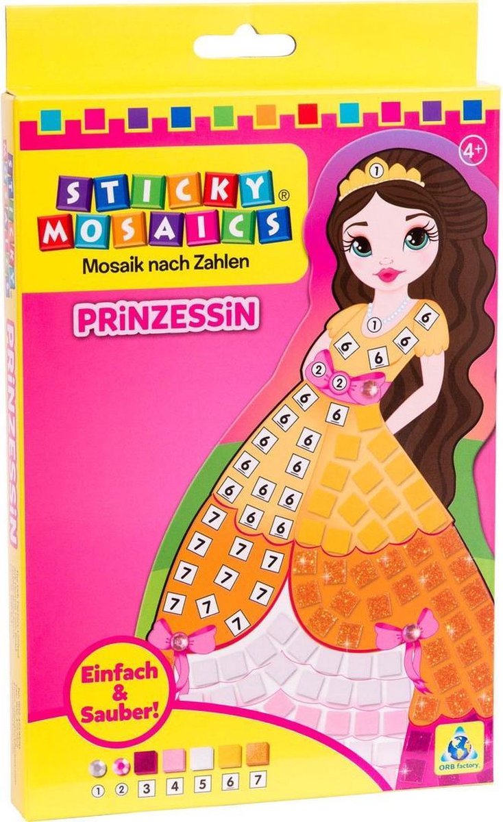 Sticky Mosaics mozaïeken prinses Wil jij jouw creativiteit kwijt, nou dat kan bij deze leuke mozaïeken prinses. Met sprankelende juwelen en zelfklevende schuimrubberen schijven kun jij ze gaan versieren, zodat ze kan schitteren. Er zit een muurhanger bij waardoor jij jouw mozaïeken prinses kan ophangen. Specificaties: Kleur: oranje Geslacht: junior Materiaal: schuimrubber Afmetingen verpakking: 14,6 x 23,5 x 1,9 cm Leeftijd: vanaf 4 jaar Inhoud: 1 Mozaïek dessin + muurhanger Zelfklevende schuimrubberen