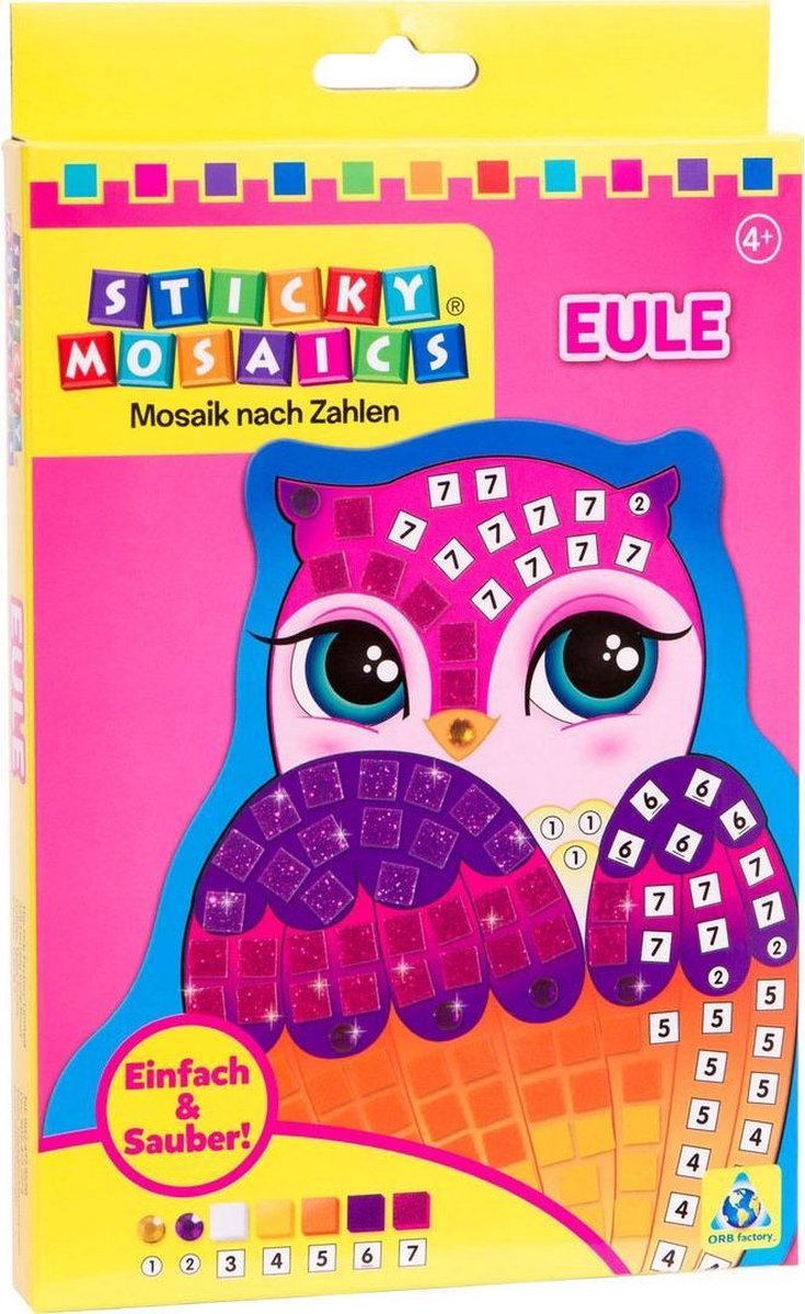Sticky Mosaics mozaïeken uil Wil jij jouw creativiteit kwijt, nou dat kan bij deze leuke mozaïeken uil. Met sprankelende juwelen en zelfklevende schuimrubberen schijven kun jij ze gaan versieren, zodat ze kan schitteren. Er zit een muurhanger bij waardoor jij jouw mozaïeken uil kan ophangen. Specificaties: Kleur: paars Geslacht: junior Materiaal: schuimrubber Afmetingen verpakking: 14,6 x 23,5 x 1,9 cm Leeftijd: vanaf 4 jaar Inhoud: 1 Mozaïek dessin + muurhanger Zelfklevende schuimrubberen