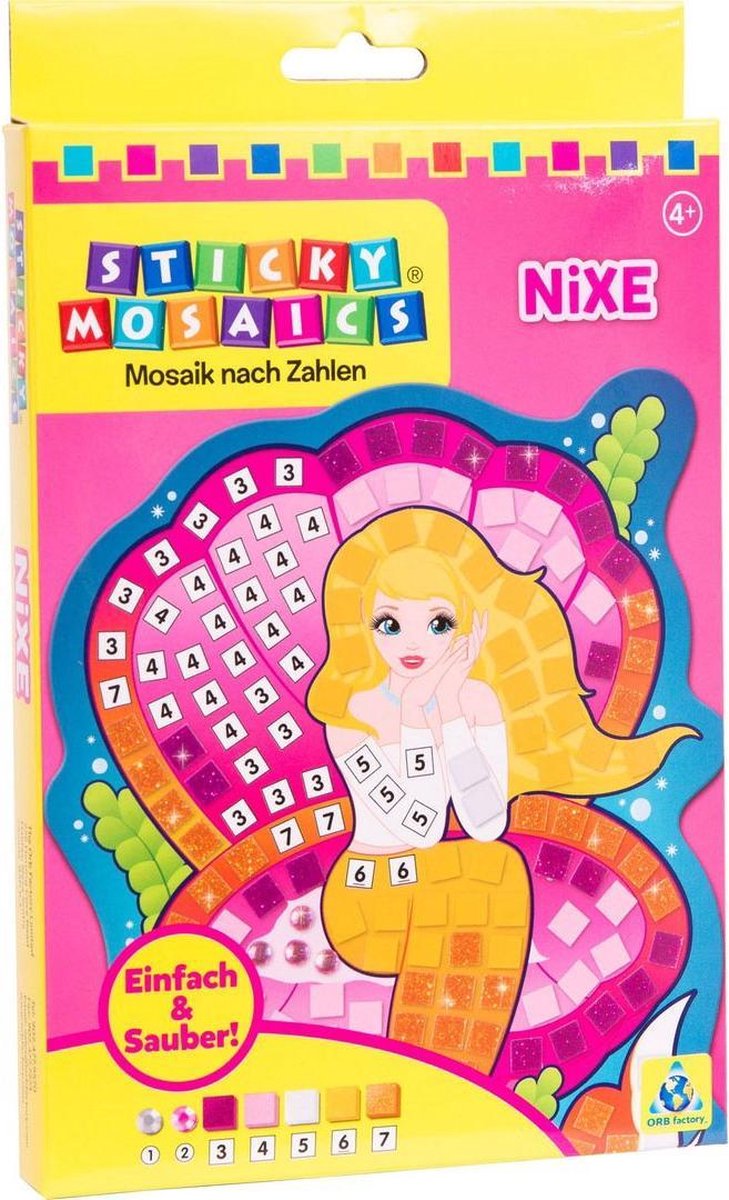 Sticky Mosaics mozaïeken zeemeermin Wil jij jouw creativiteit kwijt, nou dat kan bij deze leuke mozaïeken zeemeermin. Met de sprankelende juwelen en zelfklevende schuimrubberen schijven kun jij ze gaan versieren, zodat ze kan schitteren. Er zit een muurhanger bij waardoor jij jouw mozaïeken zeemeermin kan ophangen. Specificaties: Kleur: roze Geslacht: junior Materiaal: schuimrubber Afmetingen verpakking: 14,6 x 23,5 x 1,9 cm Leeftijd: vanaf 4 jaar Inhoud: 1 Mozaïek dessin + muurhanger Zelfklevende schuimrubberen