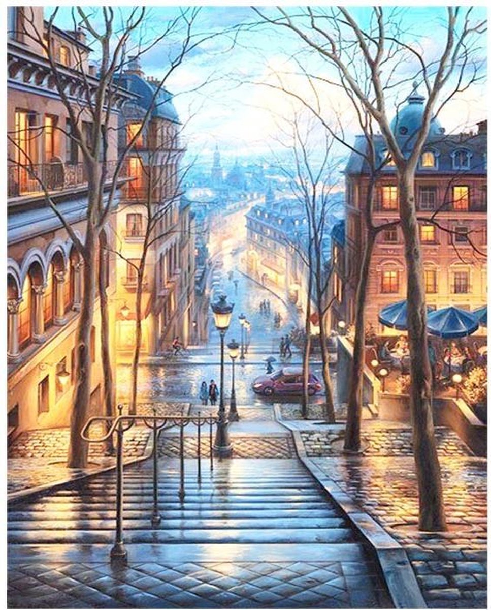Streets of Paris - Schilderen op nummer - verven op nummer - kleuren op nummer - hobby pakket - paint by number - hobbypakket - 50x40cm - los canvasdoek