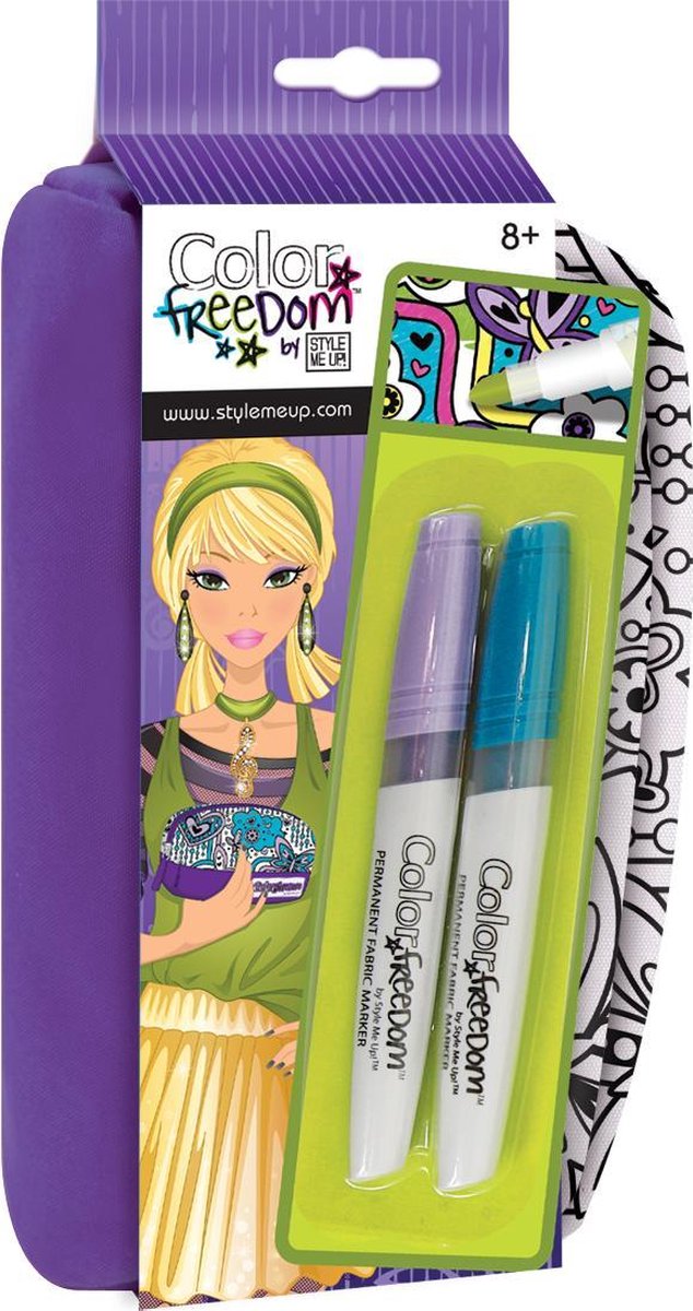 Kleur je paarse etui in je eigen stijl. Inhoud: 1 Etui en 1 textielstift. Afmeting: 11x24x6 cm.