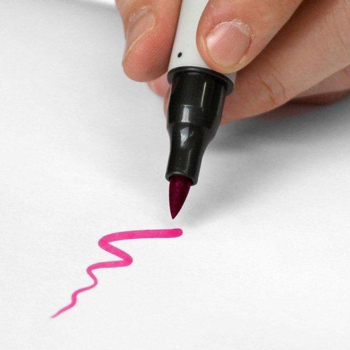 De Stylefile Marker Brush is het nieuwe meesterwerk: uitgerust met een platte en spitze, flexibele rubberen tip. Daarmee is de Stylefile Marker Brush dé perfecte marker om grote oppervlaktes mee in te kleuren. Zoals bij een kwast is de spitze, rubberen tip flexibel en varieert van lijndikte van 1 tot ong. 6 mm. Kenmerken – ergonomisch design, goede grip – kleur- en tipmarkeringen op de dop – Roll-stop – constante inktaanvoer, in vele kleuren – beste resultaten in de Stylefile Marker Blackbooks – 122 kleuren + blender + zwart