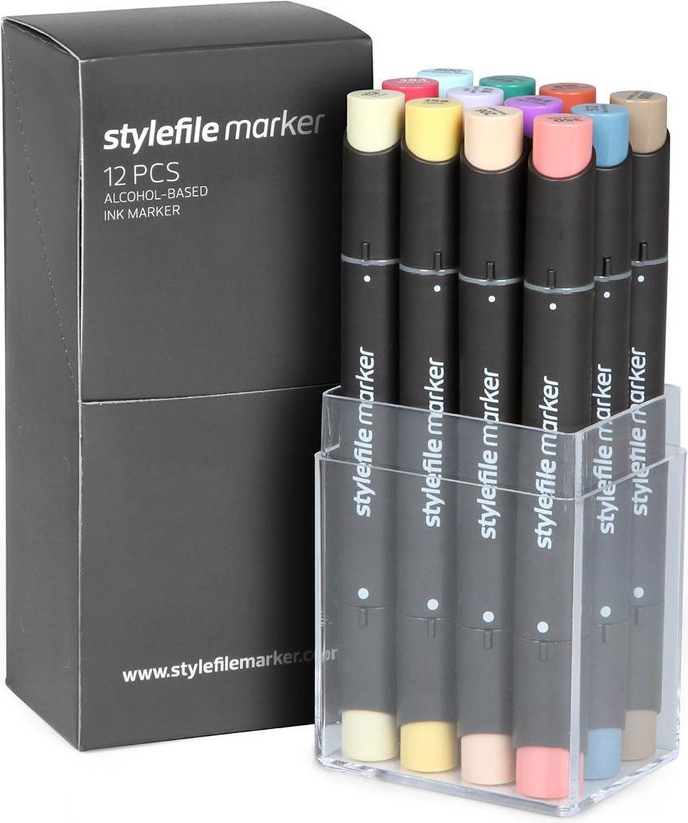 De Stylefile Marker 12er Set Main C is een goede basis samen met de andere main sets – Niet alleen voor graffiti-writers en Illustrators! Veel ontwikkelingwerkzaamheden zijn gestoken in deze professionele markers, deze eigenschappen zijn ook in de architectuur en designwereld getest. Naast de uitstekende prijs-kwaliteits-verhouding heeft deze marker zijn eigen ontwikkelde kleuren op alcoholbasis en eigen tips van de marktleider. Het ergonomische Design en de markeringen op de dop zorgen voor een goede bruikzaamheid, deze markers beschikken ook over twee stoppers die zorgen dat deze niet wegrollen. Inhoud: 112 (cream) 158 (yellow) 206 (rose beige) 350 (coral pink) 364 (deep red) 414 (dark violet light) 464 (light violet) 512 (marine blue) 600 (turquoise blue) 648 (deep green) 800 (burnt sienna) 810 (brick brown)