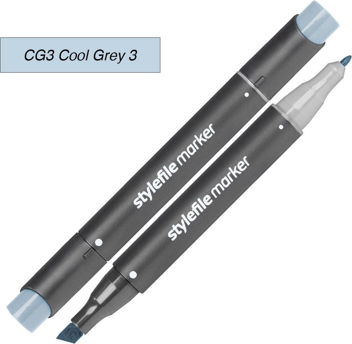 Stylefile Twin Marker - Cool Grey 3 - Deze hoge kwaliteit stift is ideaal voor designers, architecten, graffiti artiesten, cartoonisten, & ontwerp studenten