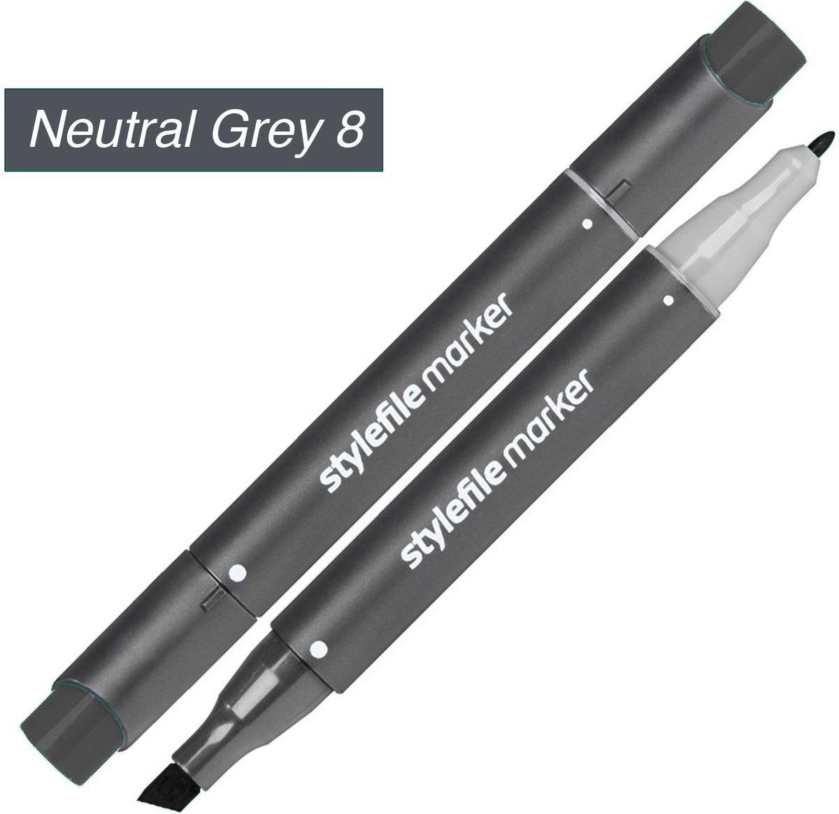 Stylefile Twin Marker - Neutraal Grijs 8 - Deze hoge kwaliteit stift is ideaal voor designers, architecten, graffiti artiesten, cartoonisten, & ontwerp studenten