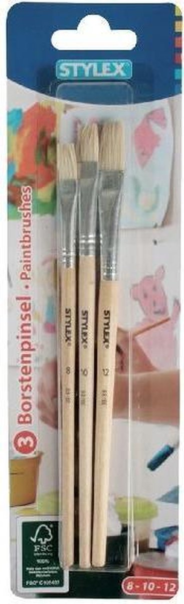 Stylexborstelpenselen met houten grip, grootte 8-10-12, 3 stuks
