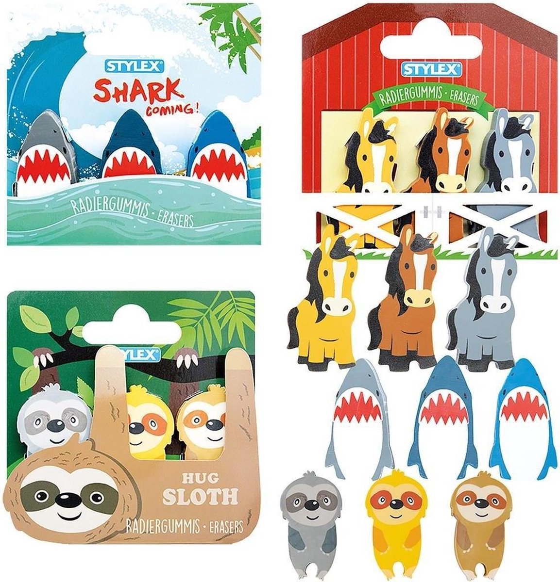Stylex dieren gummen, 3 stuks. Verkrijgbaar in verschillende uitvoeringen. U kunt niet kiezen, maar ontvangt een willekeurige uitvoering.