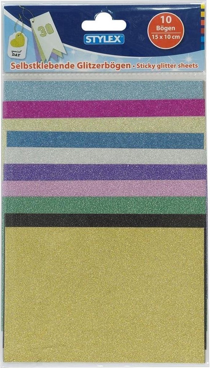 Stylex hobby glitter plakpapier van 15 x 10 cm, 10 stuks