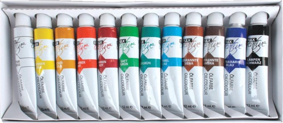 Stylex olieverf met 12 tubes met elk 12 ml inhoud, in verschillende kleuren