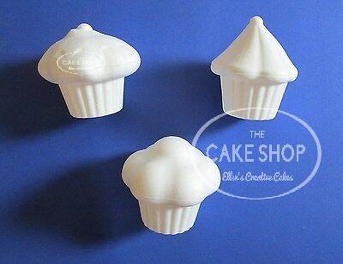 Set van 6 grote cupcakes voor het maken van decoratie cupcakes. Styropor is te bekleden met diverse klei soorten, eetbare pasta's en ook andere hobby materialen. Niet eetbaar. Inhoud 6 stuks twee van 3 verschillende modellen.