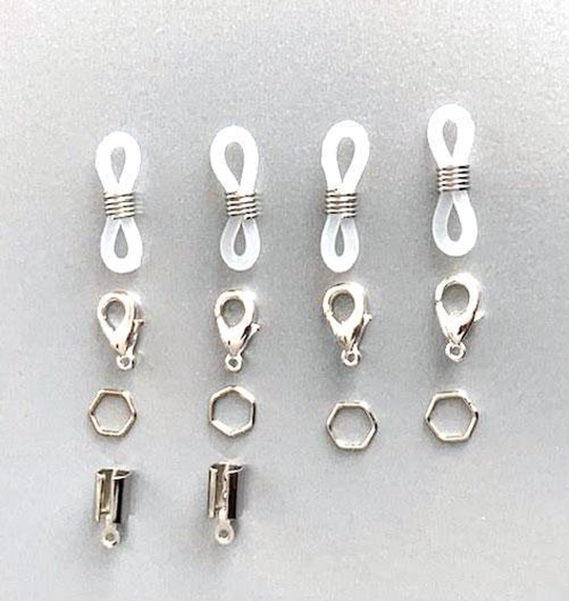 Sunglass Chain Set - DIY Kleur: Zilverkleurig Inhoud: 14 Onderdelen: 4 Rings, 4 Clasps, 4 Sunglass rubbers, 2 Cord clasps. Nickelfree