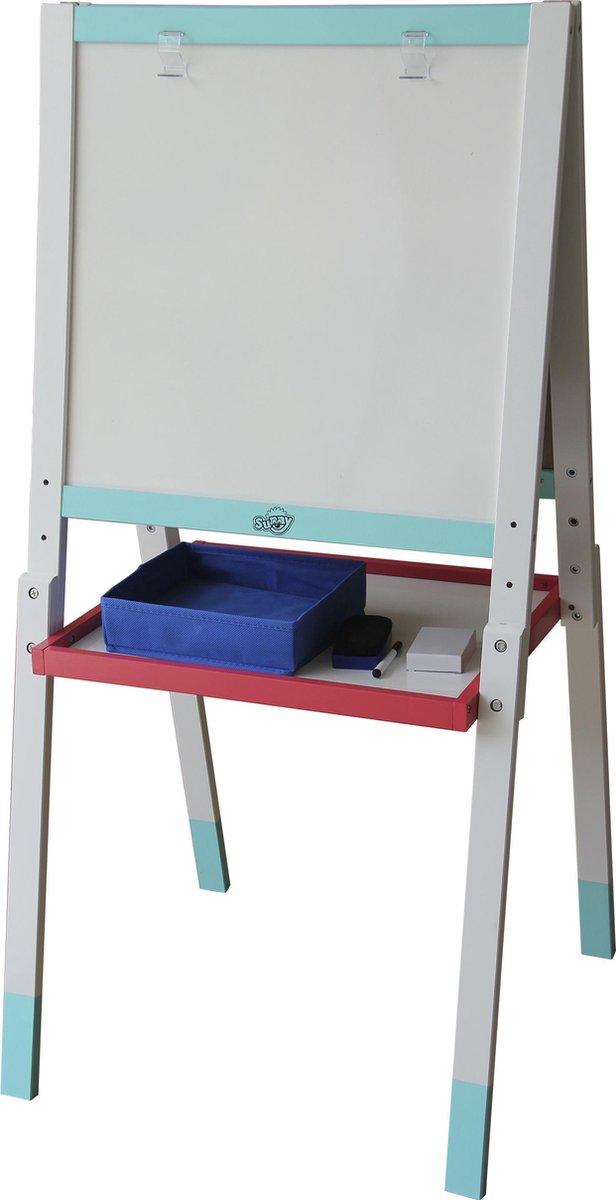 De Fresh Art Easel van Sunny groeit met je mee dankzij zijn verstelbare hoogte. De ezel heeft een blad om al je stiften of krijtjes op te leggen, of berg het netjes op in de meegeleverde non-woven opbergbak. Aan de ene kant kan je tekenen als een artiest of plaats leuke magneetjes (niet inbegrepen) op het whiteboard. Aan de andere kant is een krijtbord, zodat je gemakkelijk kunt opschrijven wat je je ouders wilt vertellen wanneer ze komen kijken. Inclusief wisser, krijtjes, marker en non-woven opbergbak. Kenmerken Krijtbord Magnetisch whiteboard Opbergblad voor alle kunstbenodigdheden Verstelbare hoogte Inclusief wisser, krijtjes, stift en non-woven opbergbak 2 jaar garantie!