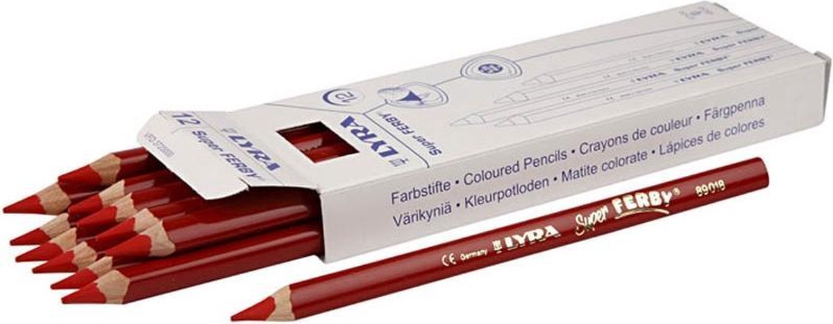 Super Ferby 1 Kleurpotloden. rood. L: 18 cm. vulling 6.25 mm. 12 stuk/ 1 doos