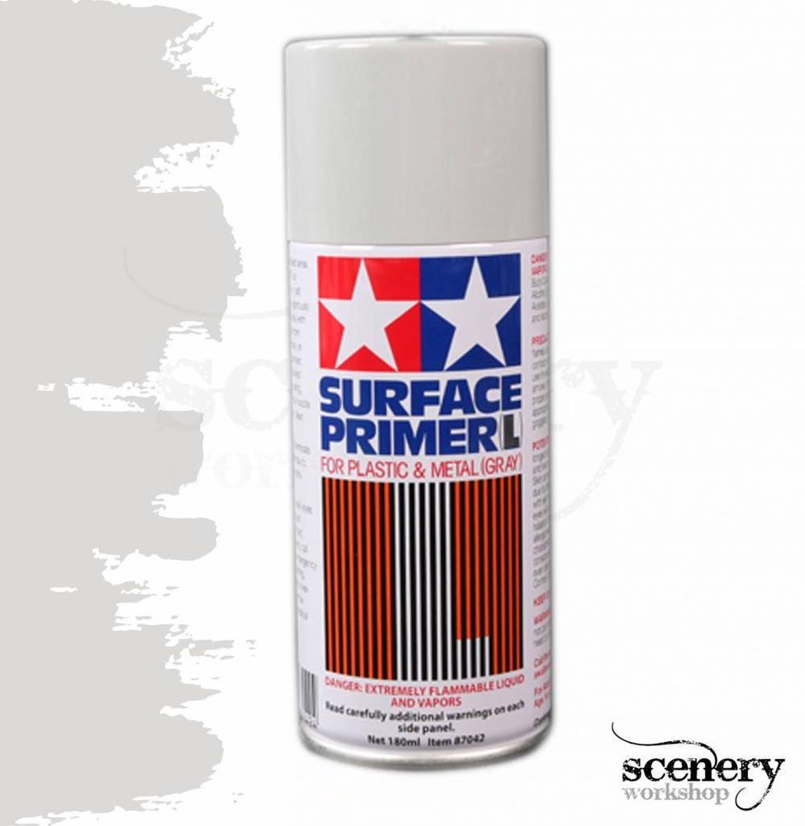 Tamiya Surface Primer L - Light Gray - 180ml - 87042 is ideaal voor het grondverven van uw plastic model onderdelen van ABS en styreen plastic. Deze primer kan ook worden gebruikt voor metalen onderdelen. De lichtgrijze kleur primer is ideaal voor donkere kleur toepassingen. De primer bijt goed in plastic oppervlakken en vult zelfs kleine krasjes en oneffenheden. Tamiya primers kunnen ook nat worden geschuurd voordat verf wordt aangebracht. Elk kan 180ml bevatten.