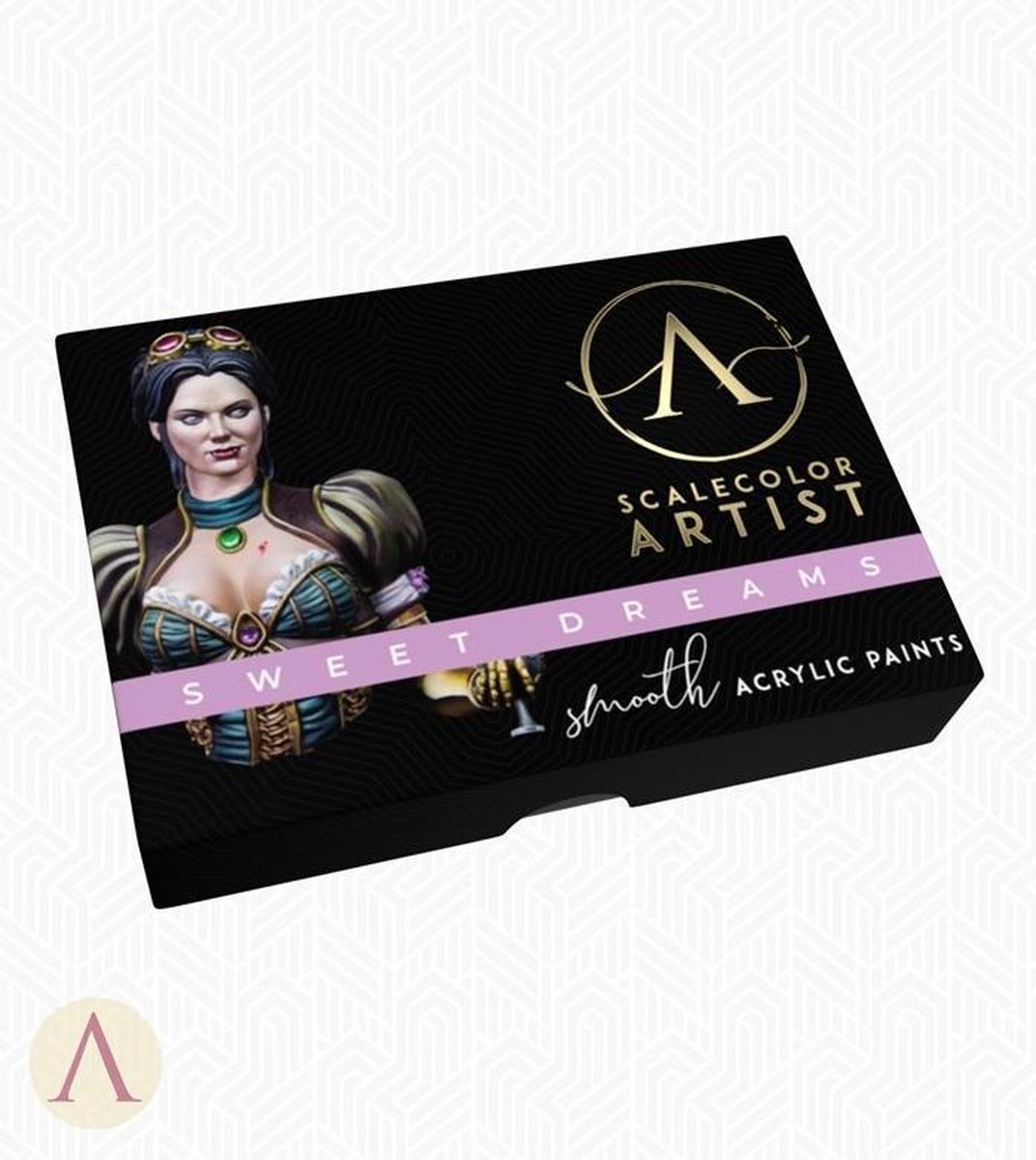 Sweet Dreams, het beste voor zoetekauwen. Het is tijd voor 6 pastelkleuren! Ideaal om te combineren met de rest van het assortiment, waardoor het model een niet-verzadigde en zachte toon krijgt en een heerlijke delicatesse ontstaat. De ScaleColor Artist-reeks is geïnspireerd op het palet van de beeldend kunstenaar. Verschillende kleuren zijn ontworpen om alle soorten miniaturen te schilderen, van historisch tot fantasie. Deze extra fijne, romige pigmentverf die in een tube wordt bewaard, is veerkrachtiger en heeft een grotere intensiteit. Het heeft een grote dekking, eenvoudige toepassing en controle, evenals een hoge veelzijdigheid zowel met penseel als airbrush. Dit alles maakt het een uniek product met een uitstekende afwerking. Deze Sweet Dreams-set bevat de volgende 6x20 ml acrylverftubes. SART-43 - Vanilla White, SART-44 - Artic Blue, SART-45 - Pastel Violet, SART-46 - Pastel Green, SART-47 - Off White, SART-48 - Pastel Blue