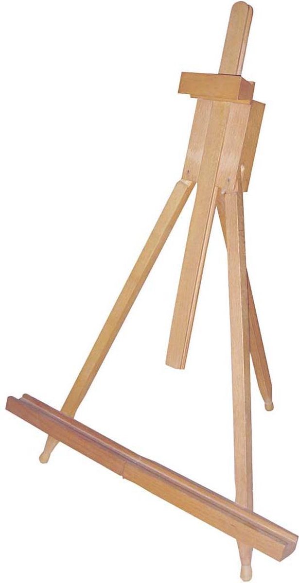 Tafelezel (1 stuks) Tafelezel gemaakt van iepenhout - met aanpasbare steun - makkelijk in te klappen - max canvas hoogte: 67 cm - gewicht 0,5 kg. Afmetingen opgevouwen: 51x8x7 cm.