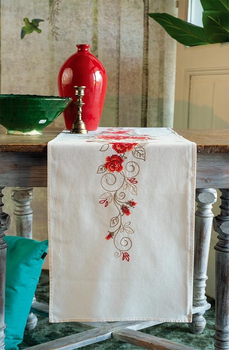 Bedrukte loper met omgezoomde boord met de afmeting: 38x142 centimeter.