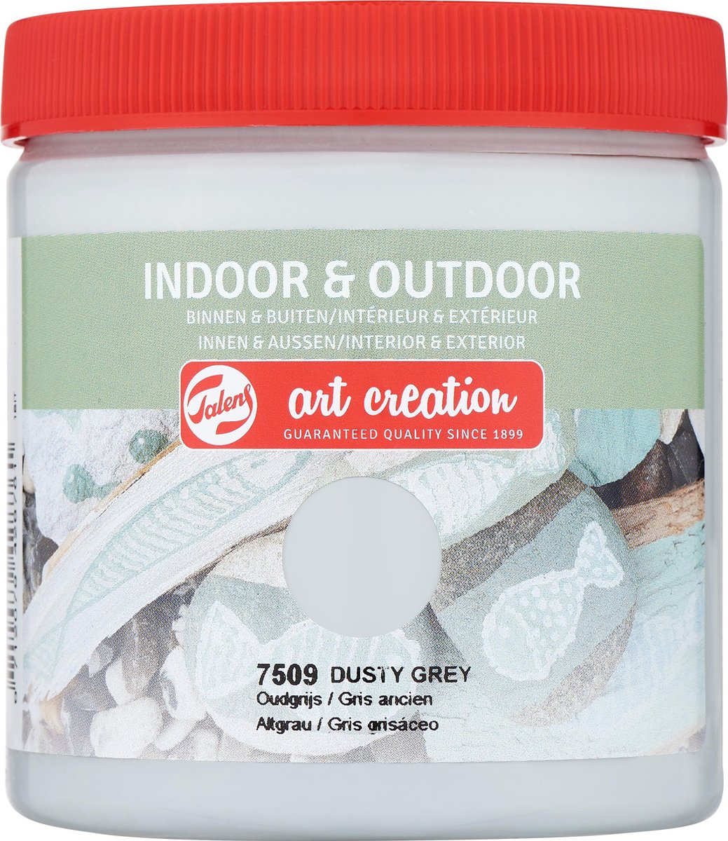 Talens Art Creation Indoor & Outdoor verf is een universele verf met een goede dekkracht, voor zowel gebruik binnenshuis als buitenshuis. Met deze zijdeglansverf kan je bijvoorbeeld ook vogelhuisjes en bloempotten decoreren. Verkrijgbaar in maar liefst 40 kleuren met zowel heldere tinten als vintage kleuren. Na 24 uur droogtijd is de verf waterbestendig en kan het buiten geplaatst worden. Deze flacon bevat 250 ml in de kleur oudgrijs. De verf is op waterbasis. Talens Art Creation Creative De nieuwe lijn van Talens Art Creation is ontwikkeld voor de creatieve hobbyist en liefhebber van do-it-yourself. Talens Art Creation biedt uitstekende materialen tegen de best mogelijke prijs. Het Creative assortiment bestaat uit diverse verflijnen zoals Textile, Glass & Porcelain, Indoor & Outdoor verf, Vintage krijtverf, Metallic verf en nog vele andere materialen voor het maken van de mooiste creaties, kunstwerken en decoraties voor in en om huis.