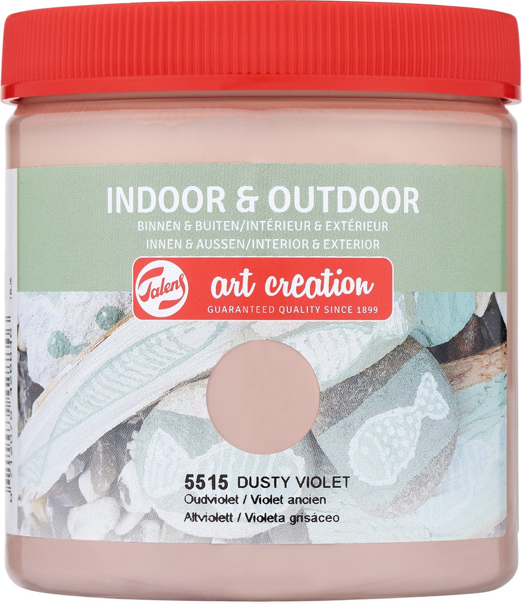 Talens Art Creation Indoor & Outdoor verf is een universele verf met een goede dekkracht, voor zowel gebruik binnenshuis als buitenshuis. Met deze zijdeglansverf kan je bijvoorbeeld ook vogelhuisjes en bloempotten decoreren. Verkrijgbaar in maar liefst 40 kleuren met zowel heldere tinten als vintage kleuren. Na 24 uur droogtijd is de verf waterbestendig en kan het buiten geplaatst worden. Deze flacon bevat 250 ml in de kleur oudviolet. De verf is op waterbasis. Talens Art Creation Creative De nieuwe lijn van Talens Art Creation is ontwikkeld voor de creatieve hobbyist en liefhebber van do-it-yourself. Talens Art Creation biedt uitstekende materialen tegen de best mogelijke prijs. Het Creative assortiment bestaat uit diverse verflijnen zoals Textile, Glass & Porcelain, Indoor & Outdoor verf, Vintage krijtverf, Metallic verf en nog vele andere materialen voor het maken van de mooiste creaties, kunstwerken en decoraties voor in en om huis.