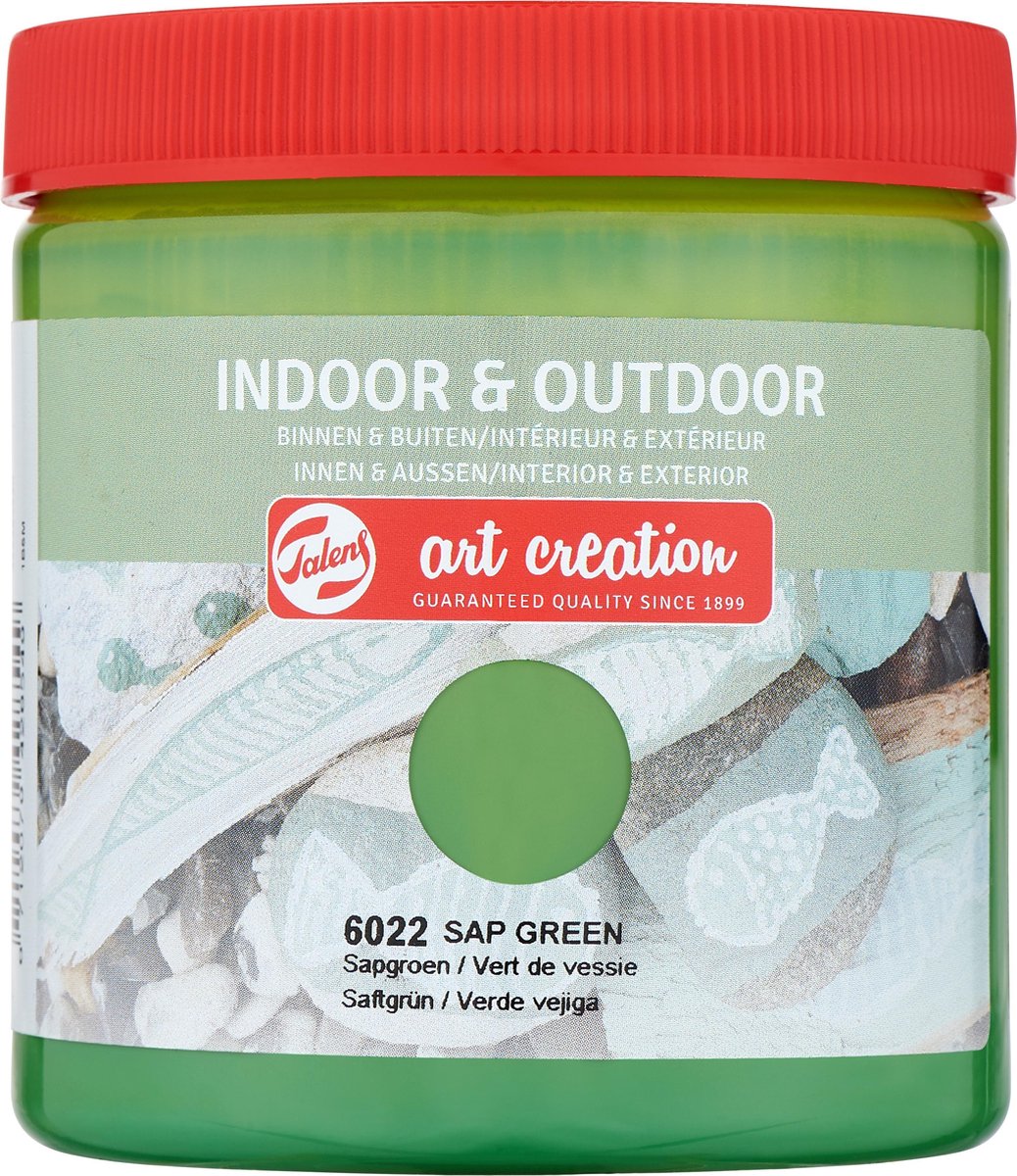 Talens Art Creation Indoor & Outdoor verf is een universele verf met een goede dekkracht, voor zowel gebruik binnenshuis als buitenshuis. Met deze zijdeglansverf kan je bijvoorbeeld ook vogelhuisjes en bloempotten decoreren. Verkrijgbaar in maar liefst 40 kleuren met zowel heldere tinten als vintage kleuren. Na 24 uur droogtijd is de verf waterbestendig en kan het buiten geplaatst worden. Deze flacon bevat 250 ml in de kleur sapgroen. De verf is op waterbasis. Talens Art Creation Creative De nieuwe lijn van Talens Art Creation is ontwikkeld voor de creatieve hobbyist en liefhebber van do-it-yourself. Talens Art Creation biedt uitstekende materialen tegen de best mogelijke prijs. Het Creative assortiment bestaat uit diverse verflijnen zoals Textile, Glass & Porcelain, Indoor & Outdoor verf, Vintage krijtverf, Metallic verf en nog vele andere materialen voor het maken van de mooiste creaties, kunstwerken en decoraties voor in en om huis.