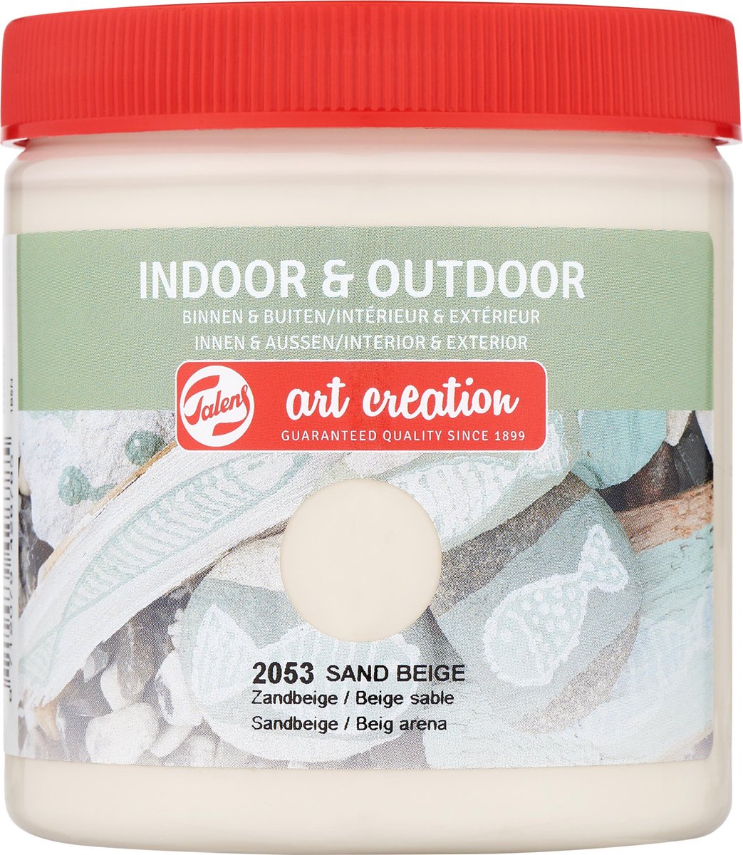 Talens Art Creation Indoor & Outdoor verf is een universele verf met een goede dekkracht, voor zowel gebruik binnenshuis als buitenshuis. Met deze zijdeglansverf kan je bijvoorbeeld ook vogelhuisjes en bloempotten decoreren. Verkrijgbaar in maar liefst 40 kleuren met zowel heldere tinten als vintage kleuren. Na 24 uur droogtijd is de verf waterbestendig en kan het buiten geplaatst worden. Deze flacon bevat 250 ml in de kleur zandbeige. De verf is op waterbasis. Talens Art Creation Creative De nieuwe lijn van Talens Art Creation is ontwikkeld voor de creatieve hobbyist en liefhebber van do-it-yourself. Talens Art Creation biedt uitstekende materialen tegen de best mogelijke prijs. Het Creative assortiment bestaat uit diverse verflijnen zoals Textile, Glass & Porcelain, Indoor & Outdoor verf, Vintage krijtverf, Metallic verf en nog vele andere materialen voor het maken van de mooiste creaties, kunstwerken en decoraties voor in en om huis.