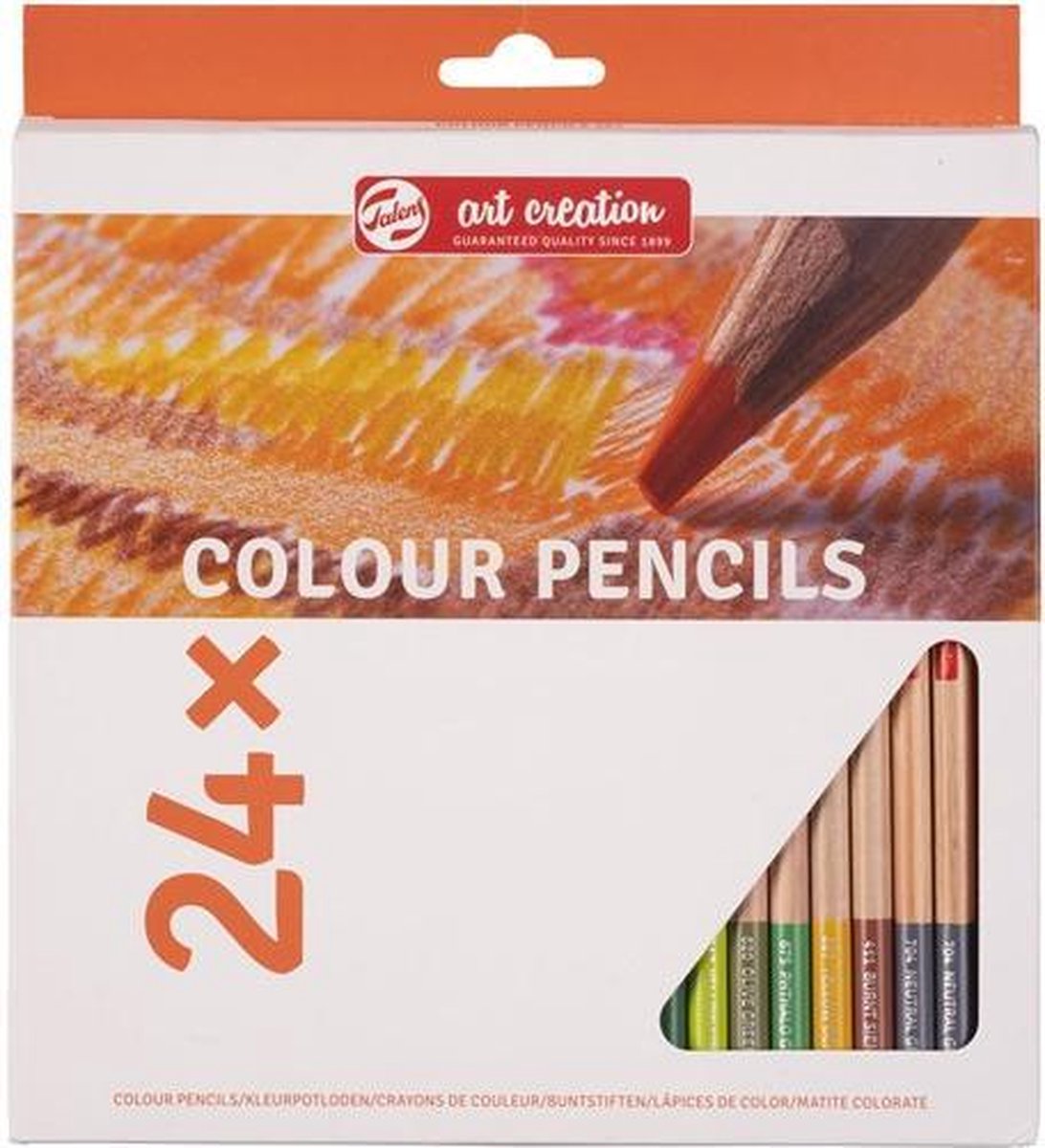 Kleurpotloden van Talens Art Creation worden gemaakt van hoogwaardige pigmenten die zorgen voor een excellente kleurafgifte en zijn duurzaam in gebruik. Het assortiment kleurpotloden is zeer geschikt voor gelaagd werken, zodat je je tekening geleidelijk kunt opbouwen. De sets kleurpotloden van Talens Art Creation bevatten een uitgebalanceerde kleurenrange, verkrijgbaar in sets van 12 en 24. Kleuren: 105: Titaanwit 224: Napelsgeel Rood 275: Primairgeel 270: Azogeel Donker 276: Azo-Oranje 311: Vermiljoen 334: Scharlaken 357: Roze 545: Roodviolet 376: Purper 548: Blauwviolet 504: Ultramarijn 564: Briljantblauw 660: Turkooisgroen Licht 615: Paul Veronesegroen 675: Phtalogroen 617: Geelgroen 674: Phtalogroen Donker 620: Olijfgroen 227: Gele Oker 411: Sienna Gebrand 403: Van Dijckbruin 704: Grijs 701: Ivoorzwart