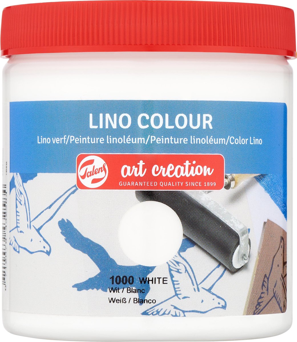 Talens Art Creation linoverf is een linoleumverf op waterbasis voor lino printing / blockprinting. De verf heeft een uitstekende dekkracht, een hoog pigmentgehalte en is lichtecht. Gebruik een gladde roller om de verf op de stempel aan te brengen. Deze flacon bevat 250 ml in de kleur wit. Naast deze kleur zijn er nog 10 kleuren in het assortiment! Talens Art Creation Creative De nieuwe lijn van Talens Art Creation is ontwikkeld voor de creatieve hobbyist en liefhebber van do-it-yourself. Talens Art Creation biedt uitstekende materialen tegen de best mogelijke prijs. Het Creative assortiment bestaat uit diverse verflijnen zoals Textile, Glass & Porcelain, Indoor & Outdoor verf, Vintage krijtverf, Metallic verf en nog vele andere materialen voor het maken van de mooiste creaties, kunstwerken en decoraties voor in en om huis.