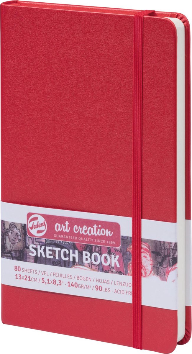In rood gebonden. Een ideaal schetsboek voor het tekenen op locatie en het oefenen van technieken. Geschikt voor verschillende technieken. • 140 grams • 13 cm x 21 cm • 80 pagina's Talens Art Creation is het merk voor creatievelingen en beginnende kunstenaars die meteen een goede kwaliteit tegen een betaalbare prijs willen.