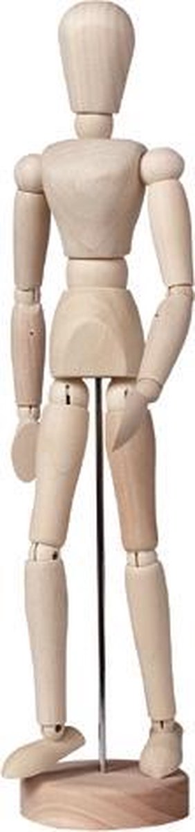 Talens ledenpop vrouw, van ongelakt blank hout. Wil je het menselijk lichaam tekenen of schilderen dan is deze ledenpop een onmisbaar hulpmiddel. Je kunt de ledematen in allerlei verschillende standen draaien. De ledenpop kan worden vastgezet op de bijgeleverde metalen standaard. Ook leuk om als decoratie neer te zetten.