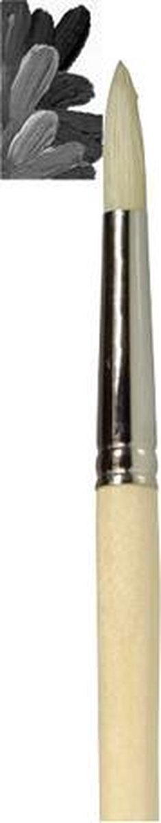 Serie: 201 Haar: gebleekt Chinees varkenshaar Vorm: rond, gepunt Huls: rond, naadloos vernikkeld messing Steel: lang, transparant gelakt Karakteristieken: • zeer hoogwaardige, vormvaste haarbundel (interlocked) • slijtvaste en veerkrachtige haarbundel • kan veel dikke verf bevatten • voor een gelijkmatig rond aangezette toets