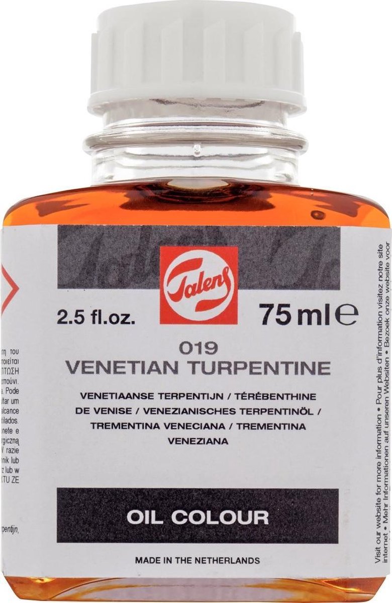 Doel: verhogen van de vloei en transparantie van glacislagen in olieverf. Samenstelling: natuurbalsem, terpentijnolie • Traditioneel glaceermedium • Verlengt de droogtijd van de verffilm • Verhoogt de duurzaamheid van de verffilm • Penseelstreek vervaagt, afhankelijk van de toegevoegde hoeveelheid • Verhoogt de glans • Enigszins vergelend • Verdunbaar met terpentine of terpentijn • Ontvlambaar
