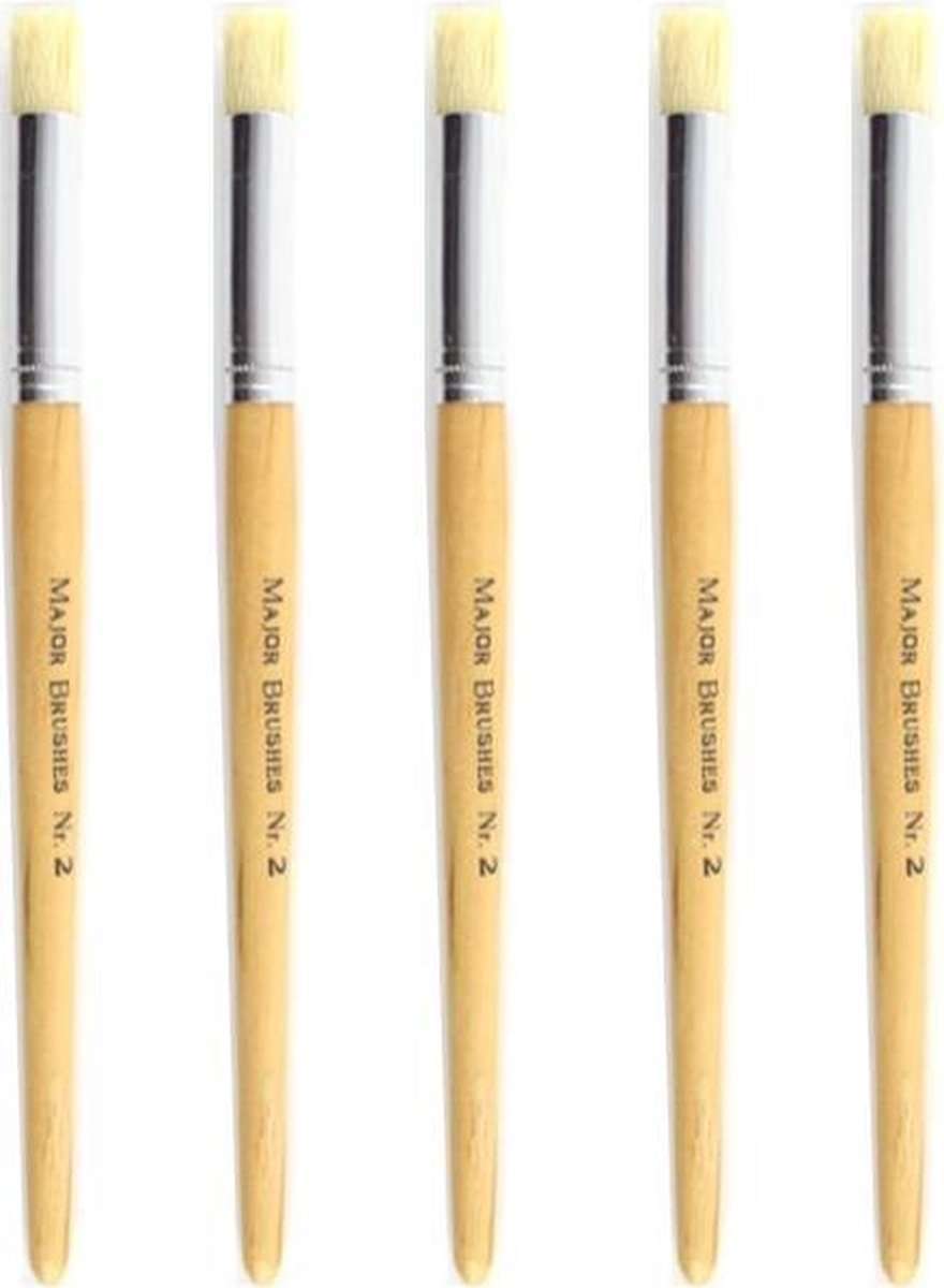 Speciale sjabloonkwast gemaakt van kort wit varkenshaar ideaal om te gebruiken bij verf sjablonen. De haarbundel is speciaal rond en kort specifiek voor te tamponeren. De totale lengte is circa 19 cm. U bekomt dus 10 stuks van deze tamponeer kwast Nr. 2.